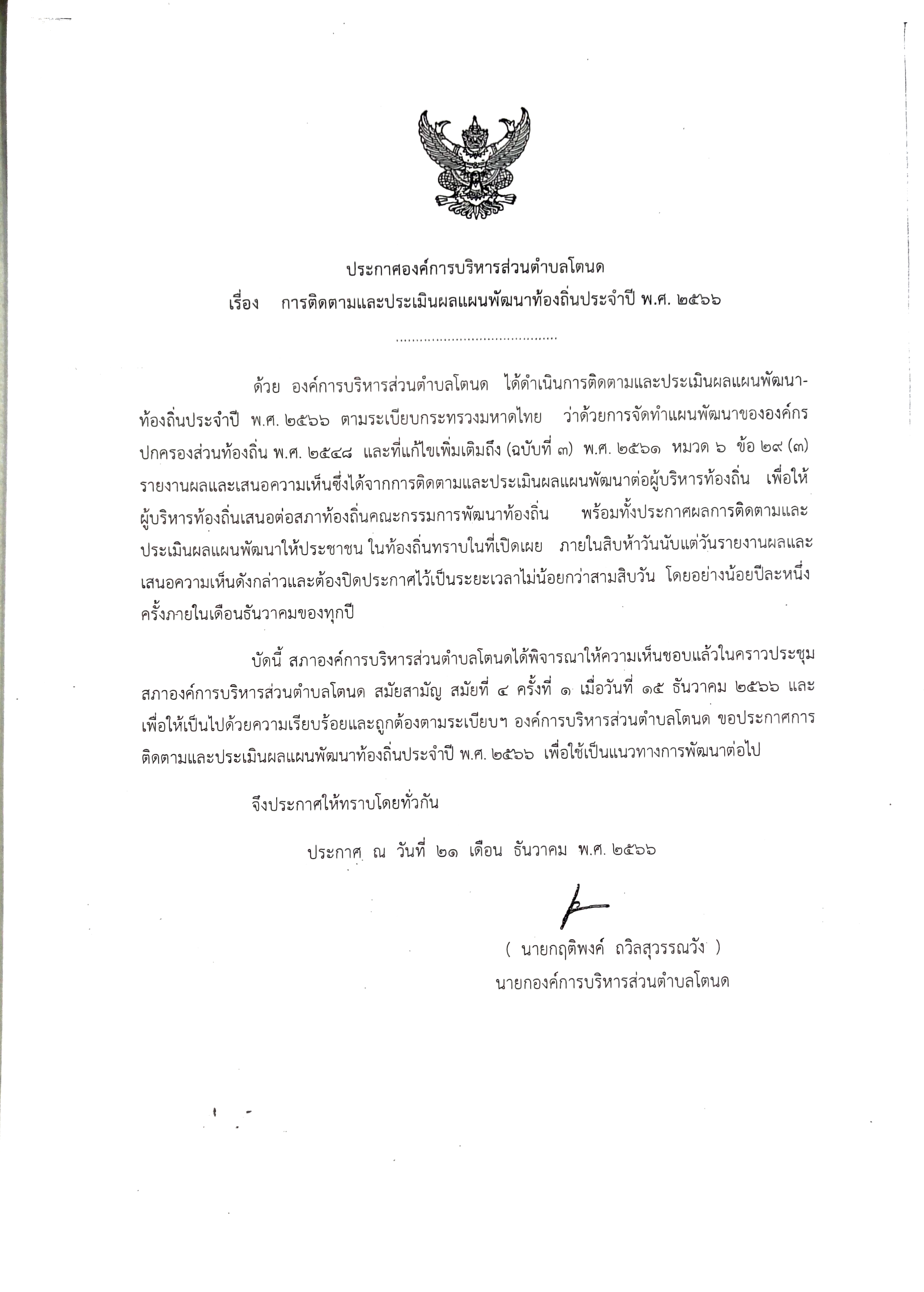 การติดตามและประเมินผลแผนพัฒนาท้องถิ่นประจำปี พ.ศ.2566